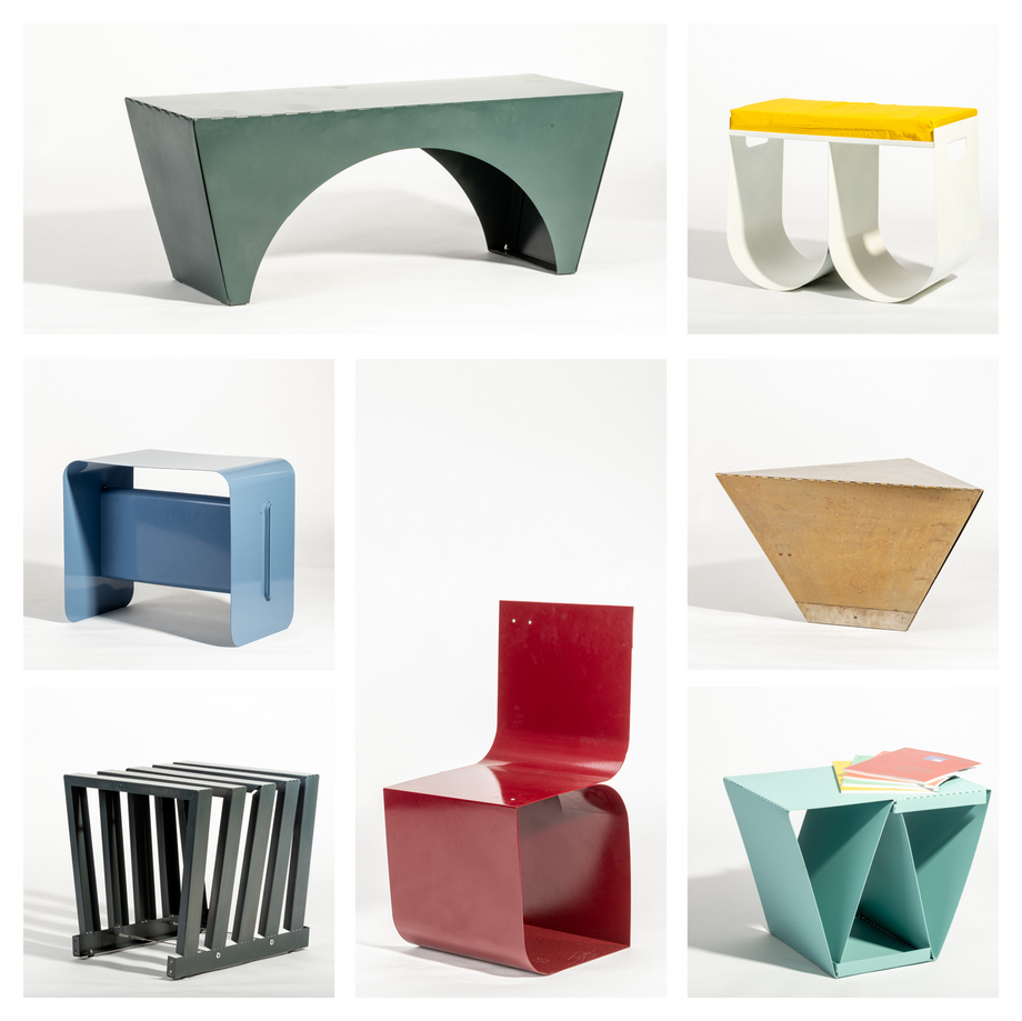 As part of the Origami Furniture module in WiSe 2024/25, students completed an introductory Grasshopper course before scripting a furniture series for the Institute of Building and Art History. In the spirit of mass customization, a configurator was developed in Grasshopper to represent different typologies. With the support of the metal workshop at COLab, the FMPA, and the Chair of Polymer-Based Lightweight Construction, prototypes were then produced and powder-coated. The curs was organized by Rolf Starke.
