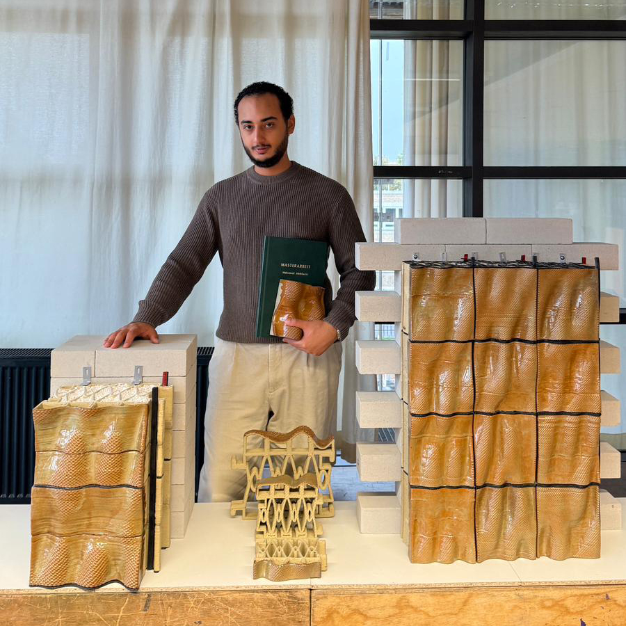Mohamed Abdelaziz conducted his master’s thesis research on 3D-printed clay façades and developed a prototype featuring integrated insulation, a mounting system, and both horizontal and vertical sealing elements. He successfully defended this outstanding work in September 2025.