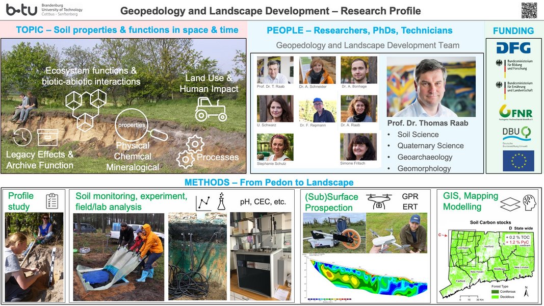 We follow a substrate-, relief-, and pedogenentic approach and investigate the close causal and functional relationship between the formation, distribution, and characteristics of surface forms and the soils therein.