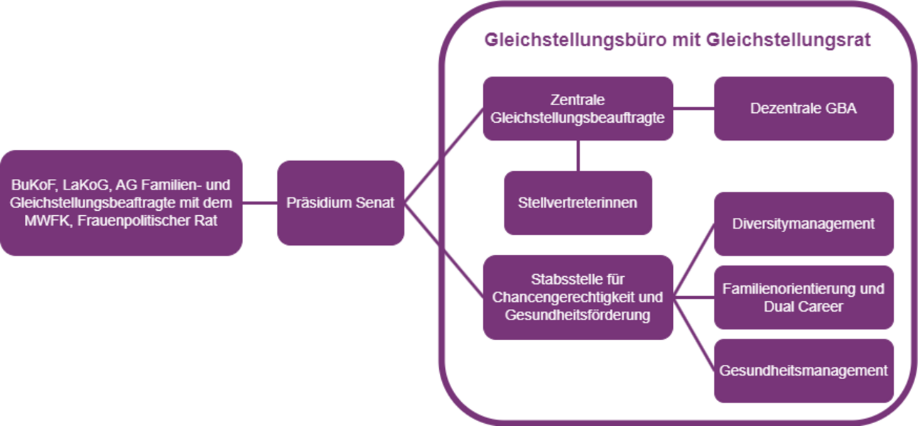 The central Equal Opportunities Officer and her deputies as well as all decentralized Equal Opportunities Officers and their deputies are permanent members of the Equal Opportunities Council. The council meets at least 2-3 times a year. The officers for Diversity, Dual Career, Family and Health also attend the meetings as permanent guests. The Equal Opportunity Council ensures its own professionalization through a variety of qualifications and a trusting collegial exchange. It is firmly anchored at our university according to the BTU's Basic Regulations § 19 para. 5.