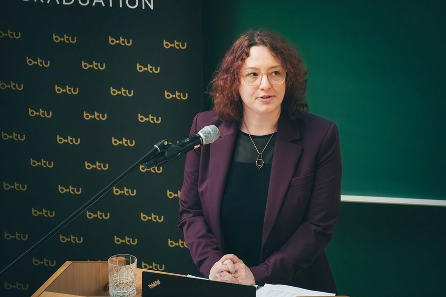 In her speech, BTU President Prof. Gesine Grande congratulated the graduates and also gave them an inspiring mission for the future: