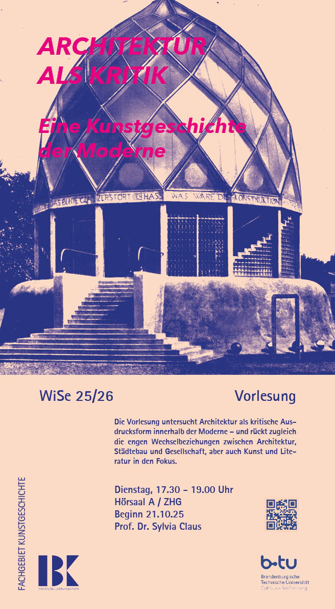 Die Vorlesung untersucht Architektur als kritische Ausdrucksform innerhalb der Moderne – und rückt zugleich die engen Wechselbeziehungen zwischen Architektur, Städtebau, bildender Kunst, Design und Literatur in den Fokus. Architektur wird als ästhetisch-politisches Medium begriffen, das gesellschaftliche Verhältnisse sichtbar macht, reflektiert und infrage stellt.