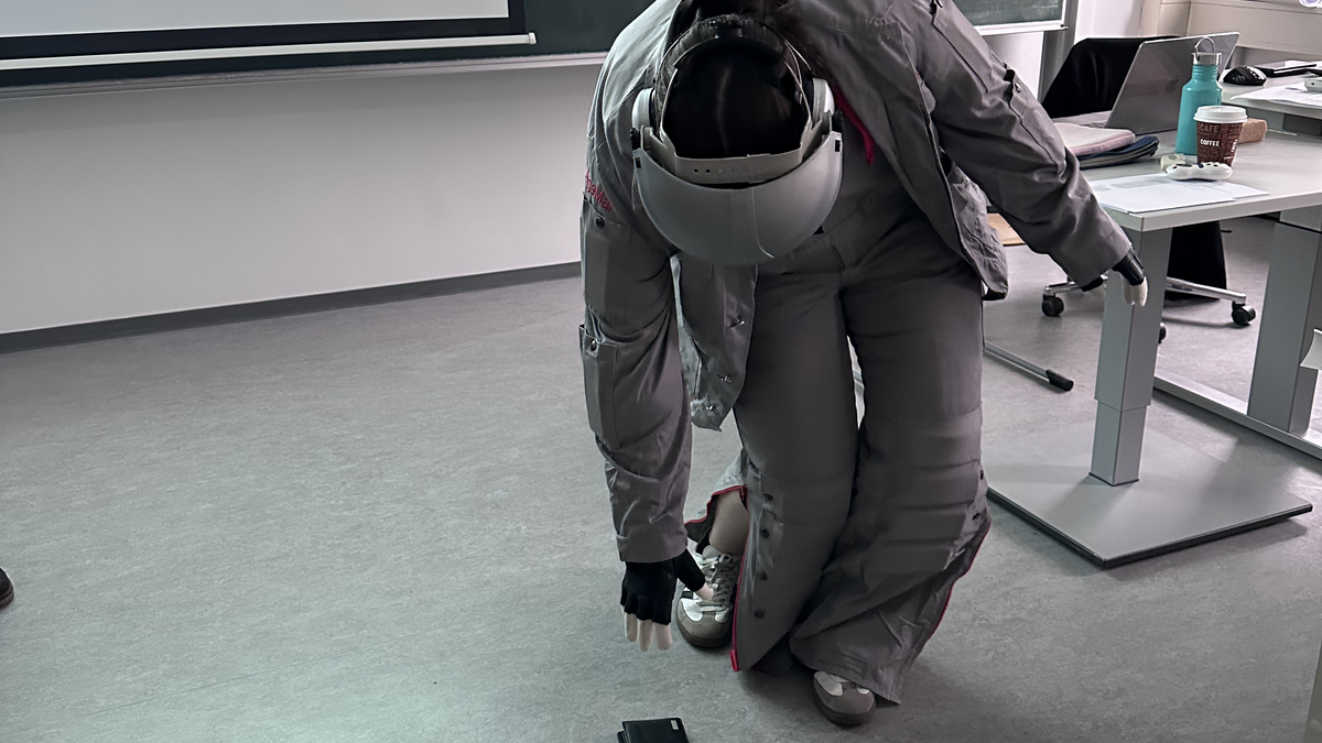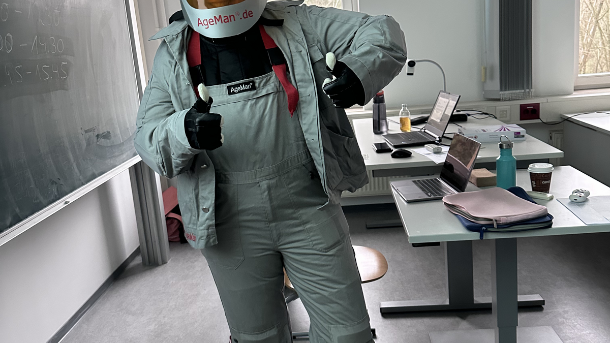 Besonders gut kamen bei der jungen Zielgruppe auch wieder die Selbsterfahrungen durch den Altersanzug an. Mit kleinen Aufgaben in einem Parcours konnten verschiedene Situationen und damit verbundene Schwierigkeiten am eigenen Körper erlebbar gemacht werden. Diese wurden im Anschluss von den Schüler*innen reflektiert und die größten "Stolperfallen" wurden zusammengetragen.