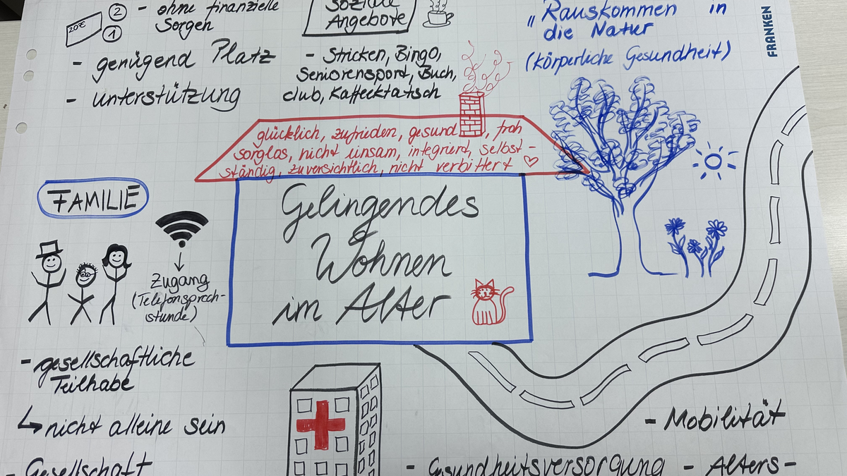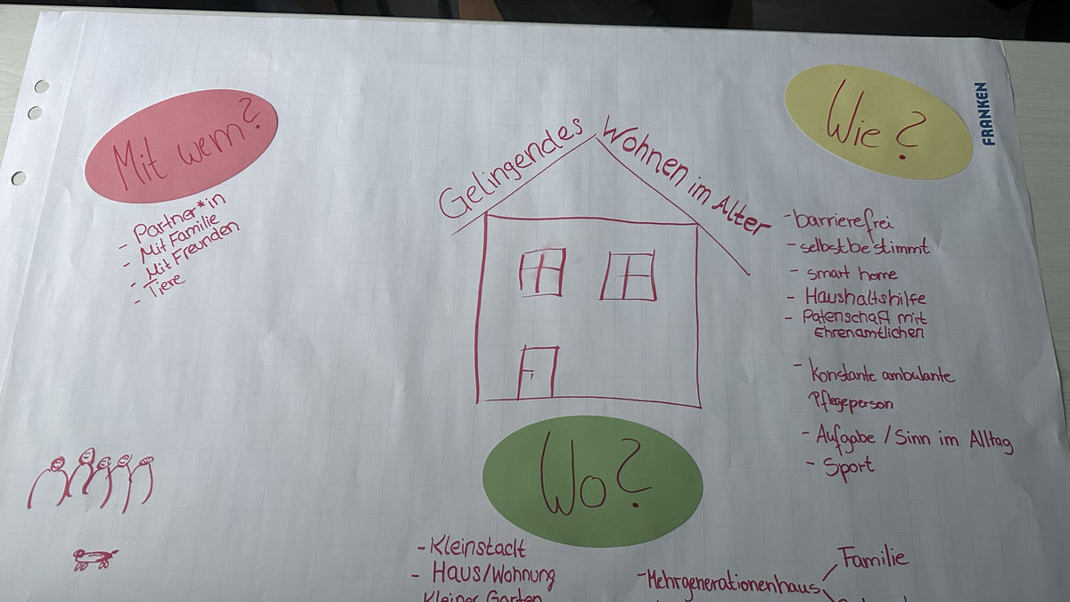 Am Ende des Seminars hielten die Studierende in Gruppen ihre Überlegung zum „Gelingenden Wohnen im Alter“ auf Plakaten fest. Diese und weitere Eindrücke können untenstehend in der Galerie angesehen werden.