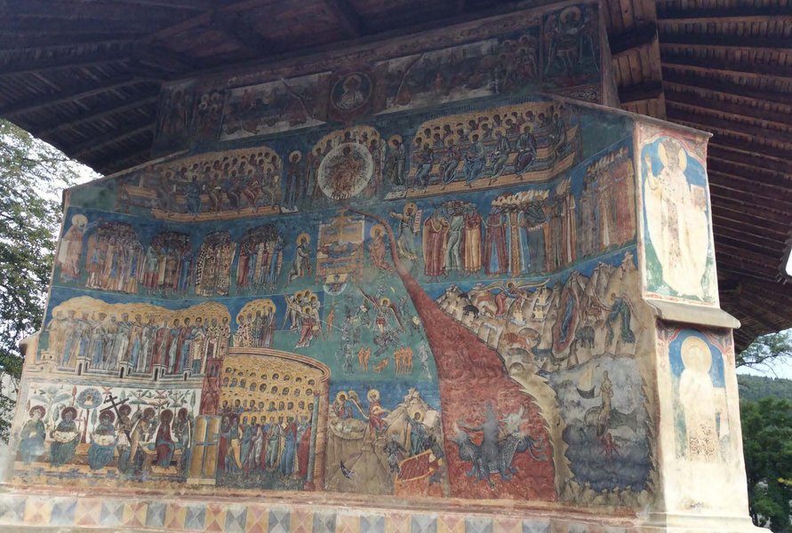 During our bus trip we plan to visit Moldoviţa (1532) - dominated by the golden gleam of its frescoes, Voroneţ (1488) - a veritable Sixtine Chapel of Romania and even the Orient with its blue chromatic fresco on the west wall of the church depicting "The Last Judgement", and Suceviţa (1591) - with its impressive Ladder of Virtues on the north wall of the church, all three belonging since 1993 to UNESCO World Heritage.