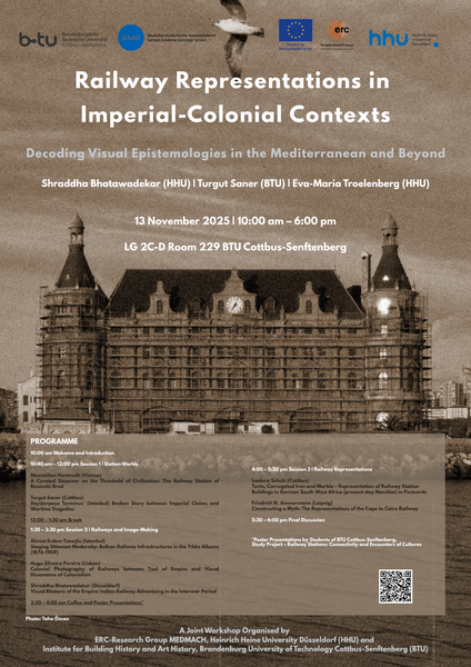 This workshop aims to examine the underlying discourses and representations in railway building by focusing on visual sources—railway architecture, like stations, bridges, and other built elements as well as images of railways and railway stations in museums and archives—be it photographs, posters, postcards, paintings, games, and other media as (counter)-archives. It brings together invited historians, art historians, archivists, heritage and museum professionals with a goal to devise interdisciplinary approaches and common methodologies to reveal and subvert the relationships between the metropole and the periphery, notions of nation building, and critically reflect on the ruptures and continuities in their interpretations in the post-imperial, post-colonial times.