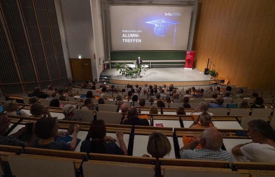 Das Alumni-Treffen wurde durch den Vize-Präsident für Studium und Lehre, Prof. Peer Schmidt, eröffnet. Er hieß die Ehemaligen an ihrer Alma Mater willkommen und gab Einblicke in die aktuellen Entwicklungen an der BTU.