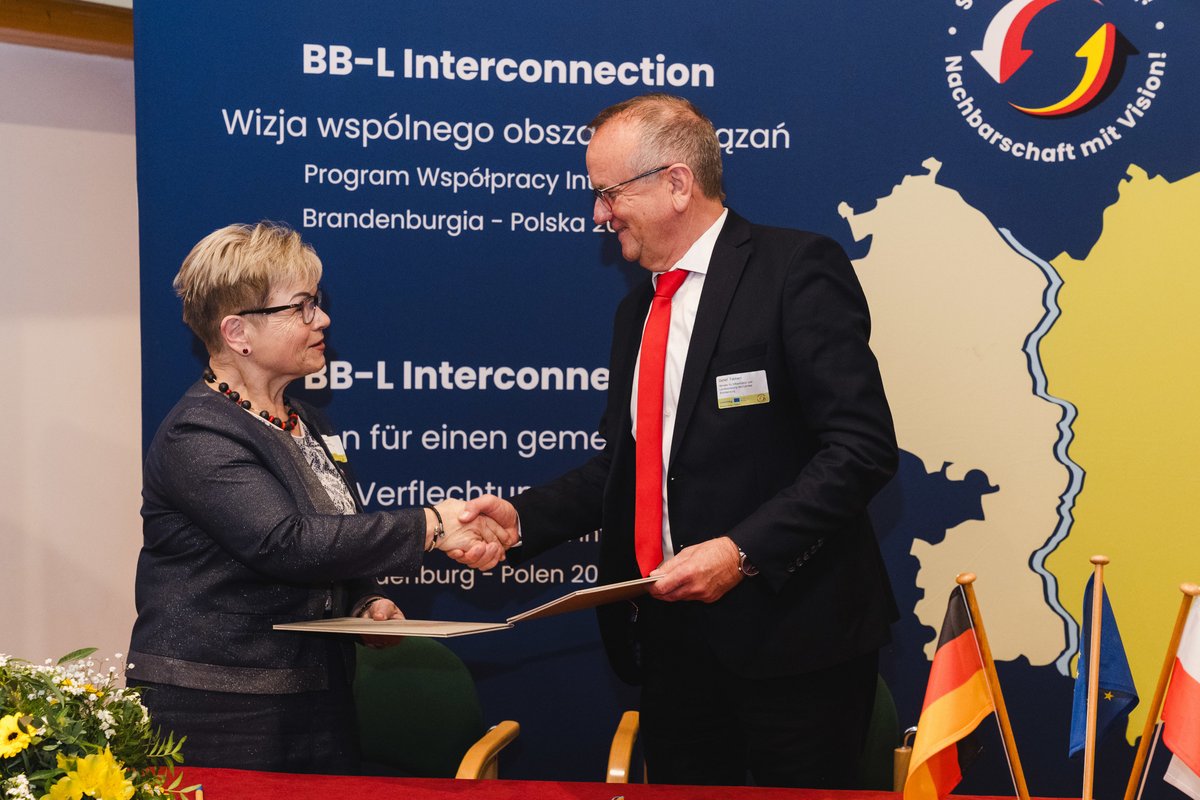 Höhepunkt der Veranstaltung war die Unterzeichnung einer gemeinsamen Absichtserklärung durch Detlef Tabbert, Minister für Infrastruktur des Landes Brandenburg, und Anna Chinalska, Mitglied des Vorstands der Wojewodschaft Lubuskie zur Vertiefung der Zusammenarbeit im Bereich der Raumentwicklung. Dazu wird in der nächsten Projektphase durch die Projektpartner eine gemeinsame Zukunftsvision für den Verflechtungsraum Brandenburg-Lubuskie erarbeitet.