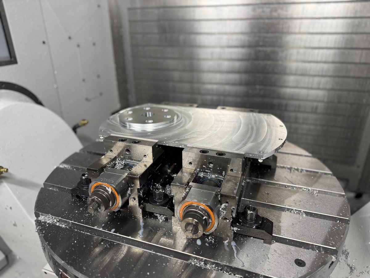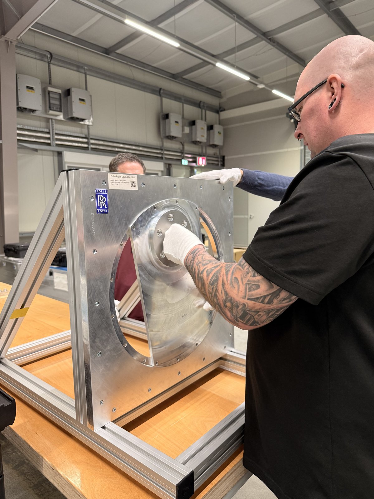 Für die Erprobung des Teststands stellt Rolls-Royce Electric dem chesco vier vorab getestete Elektromotoren inklusive Inverter – der Steuereinheit des Motors – zur Verfügung. Die vollständige Inbetriebnahme der Testeinrichtung ist für das erste Halbjahr 2026 geplant. Sie erfolgt in enger Zusammenarbeit von chesco, der BTU Cottbus–Senftenberg sowie RENK, einem führenden Anbieter von Antriebstechnik. Im Vorfeld wurden potenzielle Risiken identifiziert und minimiert, um einen reibungslosen Ablauf sicherzustellen. Eine konkrete Maßnahme ist die Entwicklung einer Vorrichtung für den ölgekühlten Motor, die das Befüllen mit Kühlmittel erleichtert. Zentrales Element ist eine sogenannte Interfaceplate, die vom ETHAN-Team entworfen und vom Fertigungsteam in unserer Forschungsfabrik realisiert wurde. Dabei kamen unter anderem die Plasmaschneidanlage Eckert Chrome Kjellberg Q1500 sowie ein CHIRON 5-Achs-Bearbeitungszentrum zum Einsatz. Weitere Inhouse-Fertigungen zur optimalen Vorbereitung der Testeinrichtung befinden sich bereits in Planung oder Umsetzung.