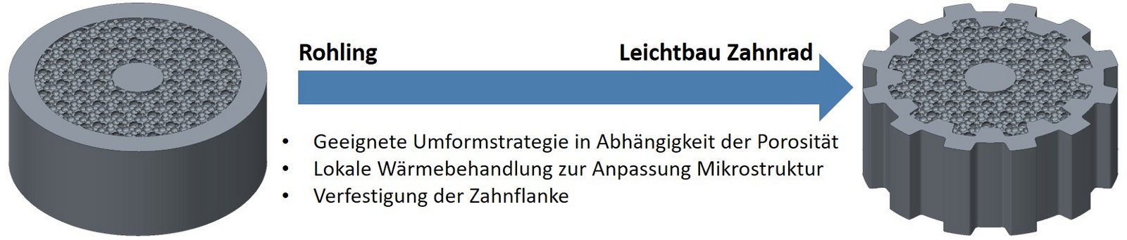 Die wissenschaftliche Umsetzung umfasst die Simulation der Schmelzbaddynamik, den Einsatz maschinellen Lernens zur Echtzeitregelung sowie umfangreiche experimentelle Charakterisierungen. Als Demonstrator entsteht ein Leichtbau-Zahnrad mit funktional gradierter Struktur: ein poröser Kern zur Gewichtsreduktion und hochfeste Randbereiche für erhöhte Verschleißbeständigkeit. Damit leistet das Projekt einen wichtigen Beitrag zur Entwicklung leistungsfähiger, ressourceneffizienter Komponenten für zukünftige Luftfahrtanwendungen.