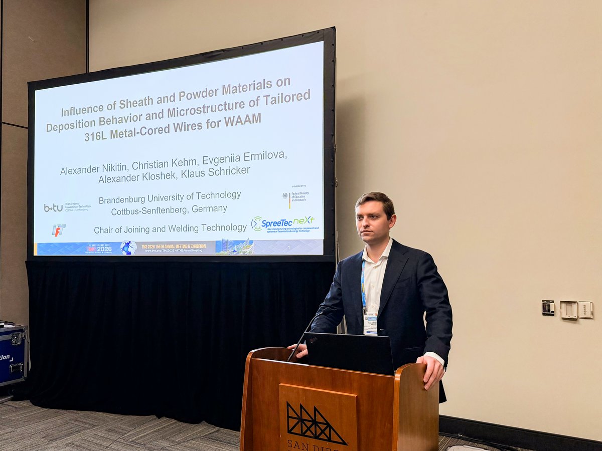 Vom 15. bis 19. März 2026 war unser Projekt auf der internationalen Fachkonferenz „TMS Annual Meeting & Exhibition“ in San Diego vertreten. Im Rahmen der Veranstaltung stellte Alexander Nikitin aktuelle Forschungsergebnisse aus dem Bereich der additiven Fertigung vor.
