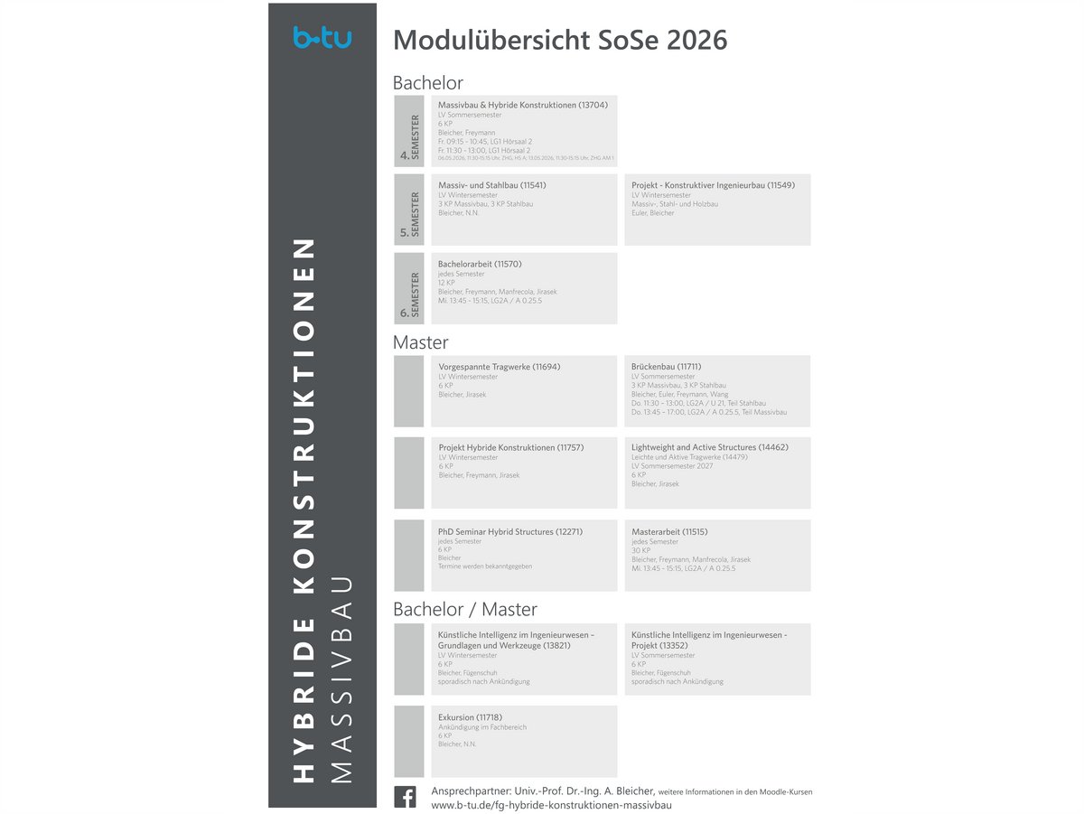Die Übersicht der aktuellen Module finden Sie unter der Rubrik Lehre/Lehrveranstaltungen.