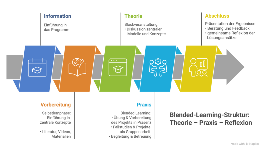 Das Modul ist über das gesamte Semester angelegt und verbindet Grundlagenvermittlung, Übungen und praxisnahe Projektarbeit in einer Kombination aus Selbstlern- und Präsenzphasen. Im Kurs werden reale Entscheidungs- und Organisationssituationen analysiert und mit unterschiedlichen digitalen und technischen Werkzeugen bearbeitet. Zum Einsatz kommen unter anderem GIS-basierte Lagebilder für Einsatz- und Katastrophenschutzszenarien, Drohnen zur Datenerhebung sowie KI-gestützte Verfahren zur Analyse von Lageentwicklungen. Ergänzend werden digitale Kommunikations- und Dokumentationsplattformen sowie prototypische Lösungen aus CAD und 3D-Druck genutzt. Die Projektarbeiten orientieren sich an konkreten Herausforderungen aus der Praxis: von digitalen Lagebildlösungen über technische Prototypen bis hin zu strategischen Kommunikationskonzepten.