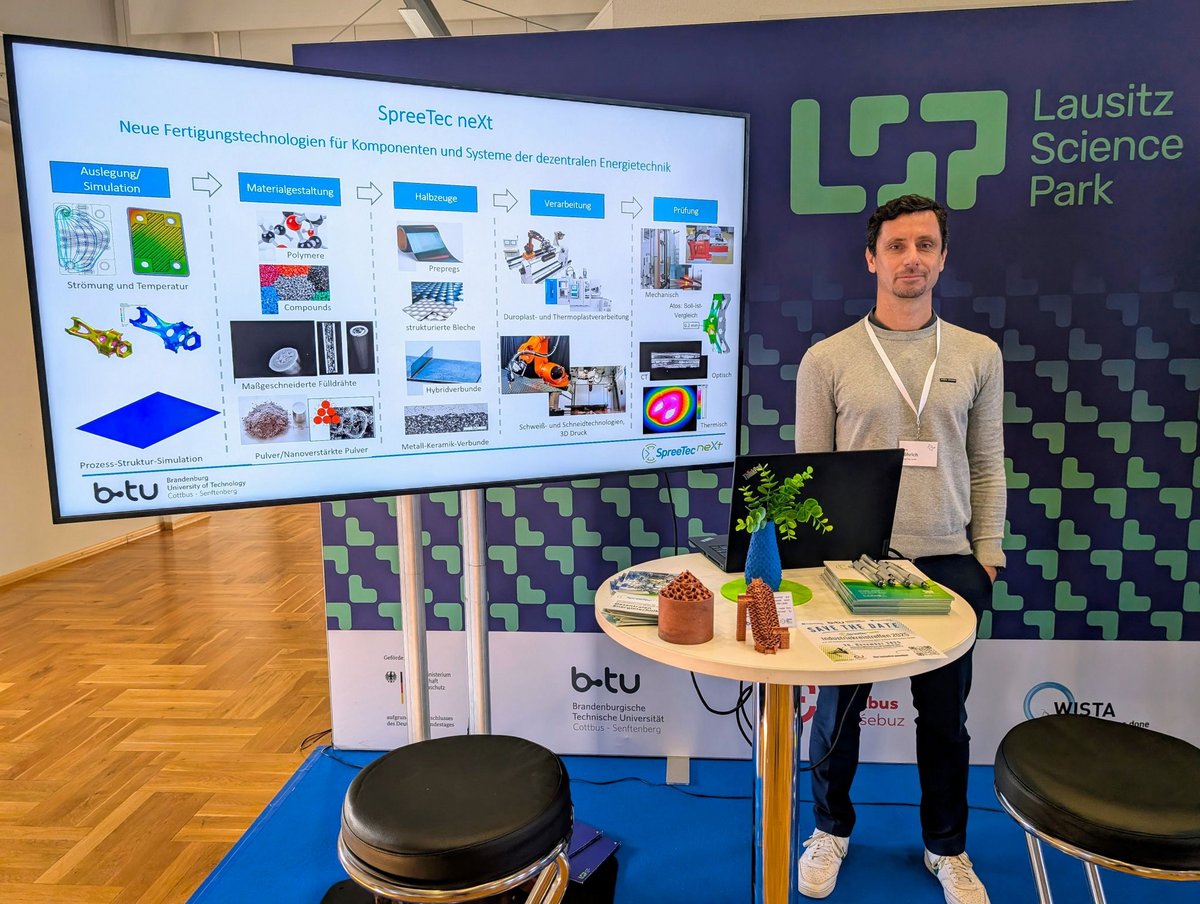 Beim diesjährigen Lausitzforum 2038 im Kulturhaus der BASF enviaM Solarpark Schwarzheide GmbH war Tobias Röhrich aus dem Team des Strukturwandelprojekts SpreeTec neXt der Brandenburgischen Technischen Universität Cottbus–Senftenberg vor Ort. Die Veranstaltung brachte Entscheidungsträgerinnen und -träger aus Wirtschaft, Wissenschaft, Politik und Zivilgesellschaft zusammen, um über zentrale Zukunftsfragen der Lausitz zu diskutieren.