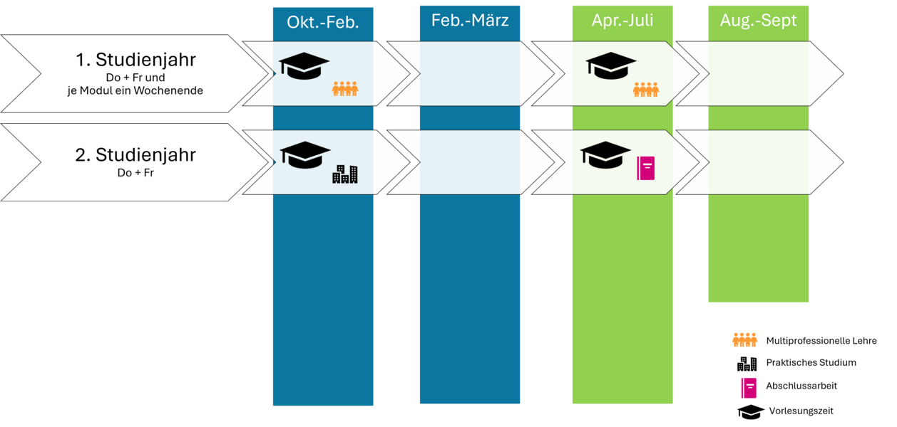 - Studienjahr (1. und 2. Semester): Do + Fr (plus Wochenende(n))