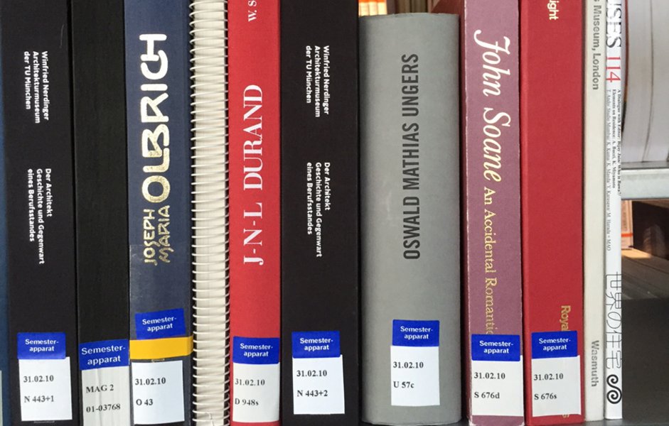 Bücher, die zu einem Semesterapparat gehören, werden durch blaue Aufkleber "Semesterapparat" gekennzeichnet.