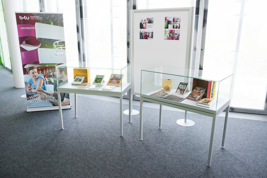 Ausstellung in den Vitrinen des 2. Obergeschosses im IKMZ Jahr 2019
