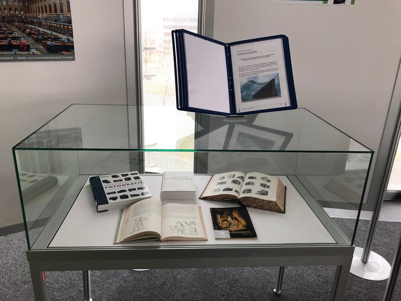 Parallel zur Ausstellung "Bibliothek im Wandel der Zeit - Fotografien von Ulrike Wiese" zeigten wir einen kleinen Ausschnitt unseres Medienbestandes zum Thema Geschichte der Fotografie und zur Architekturfotografie.