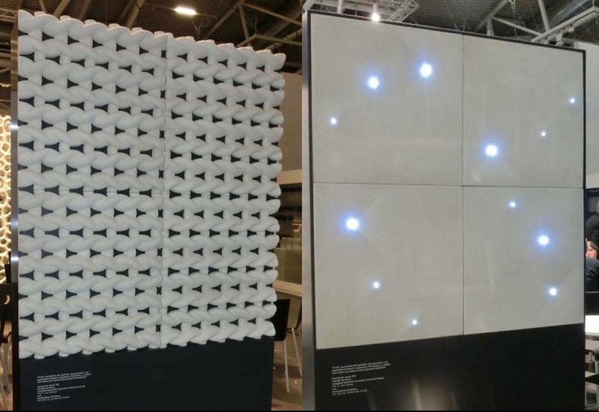 As part of the international building exhibition Bau 2013 in Munich, facade modules made of concrete with integrated electronic components were developed and exhibited. Together with Prof. Gebauer and the companies Dyckerhoff and SGL-Group, the creative and technical limits in the design of facade modules made of concrete and carbon fibers were examined. In particular, the integration of electronic components such as sensors and LED technology was also taken into account. The prototypes exhibited at the fair drew a great deal of attention from the public.