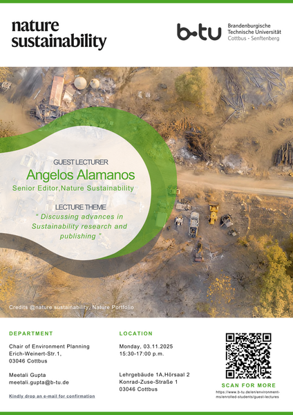 The guest lecture series of the “Measuring Sustainability” module under the Chair of Environmental Planning invites established industry experts and researchers to present their work to our students and faculty.