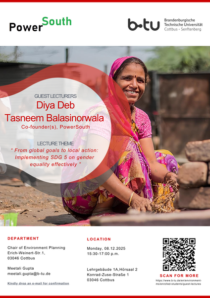 | 4 | Tasneem Balasinorwala; Diya Deb | Power South, Berlin | From global goals to local action: Implementing SDG 5 on gender equality effectively | 08.12.2025 |