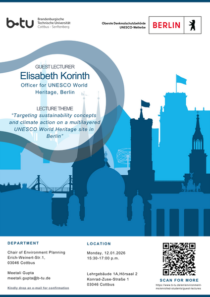 | 5 | Elisabeth Korinth | Senate Department for Urban Planning, Building, and Housing | Targeting sustainability concepts and climate action on a multilayered UNESCO World Heritage site in Berlin | 12.01.2026 |