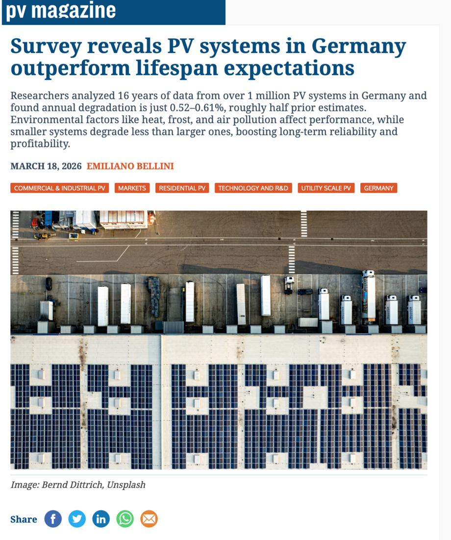A summary of the study has also been published in PV Magazine: www.pv-magazine.com/2026/03/18/survey-reveals-pv-systems-in-germany-outperform-lifespan-expectations/