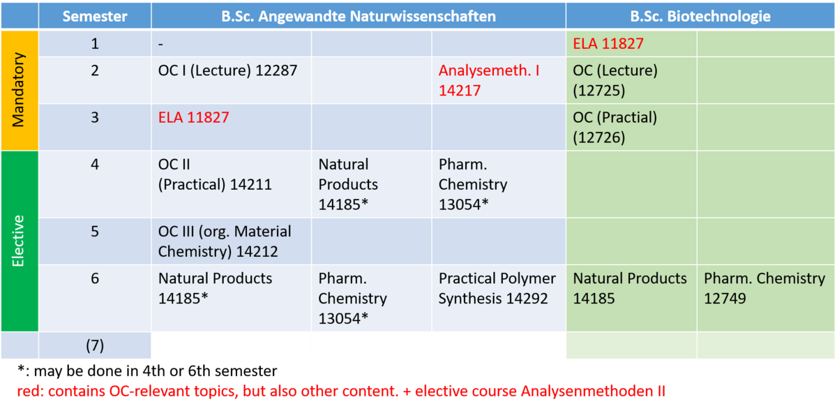 Organic Chemistry in the Programs Angew. Naturwissenschaften and Biotechnologie (B.Sc.)