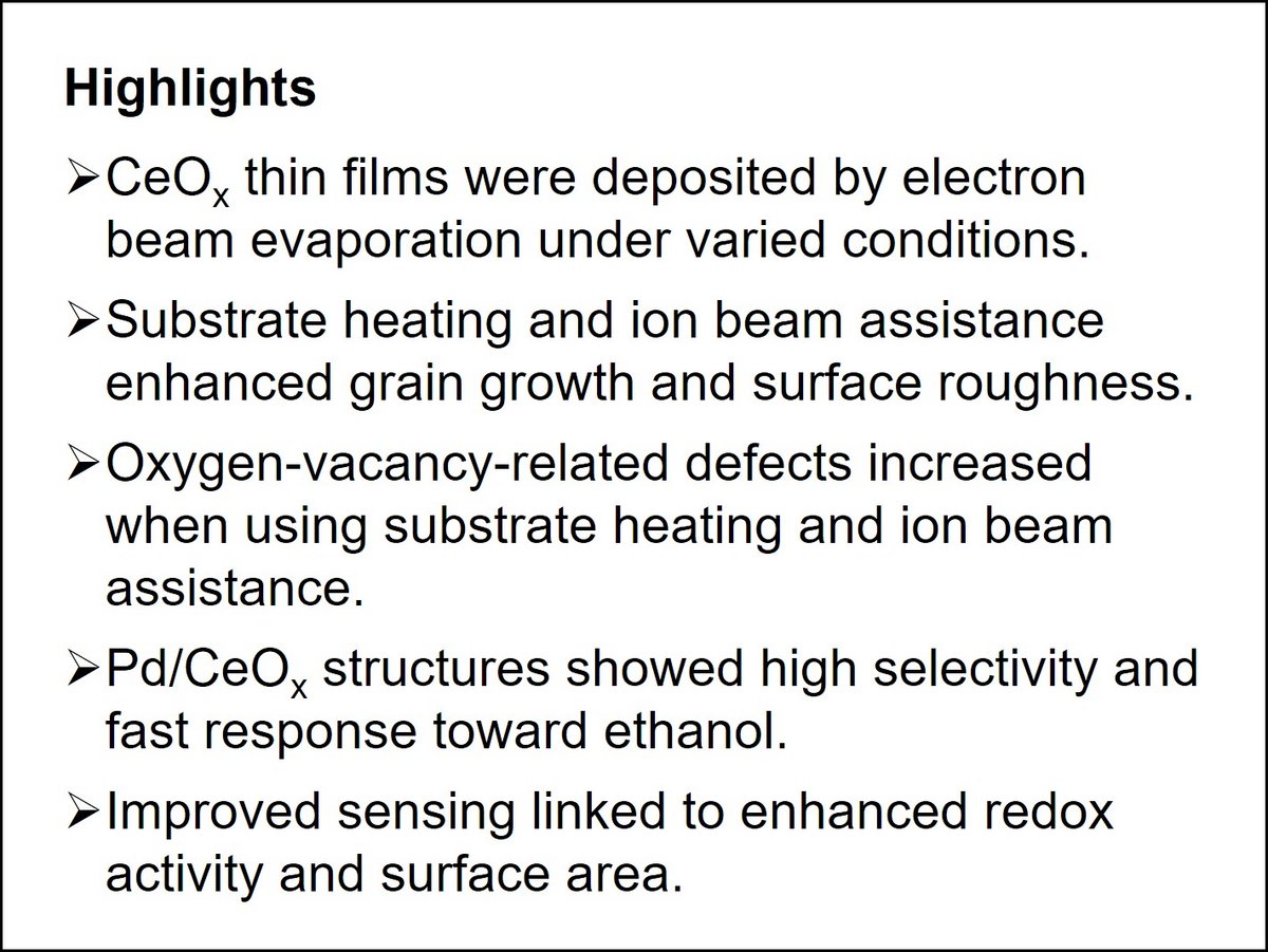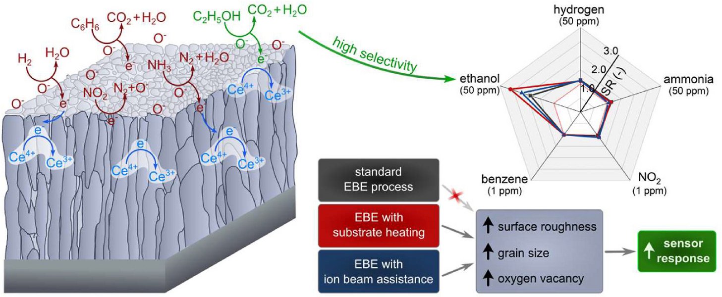 Correlation between electron beam evaporation conditions and sensor response of cerium oxide coatings