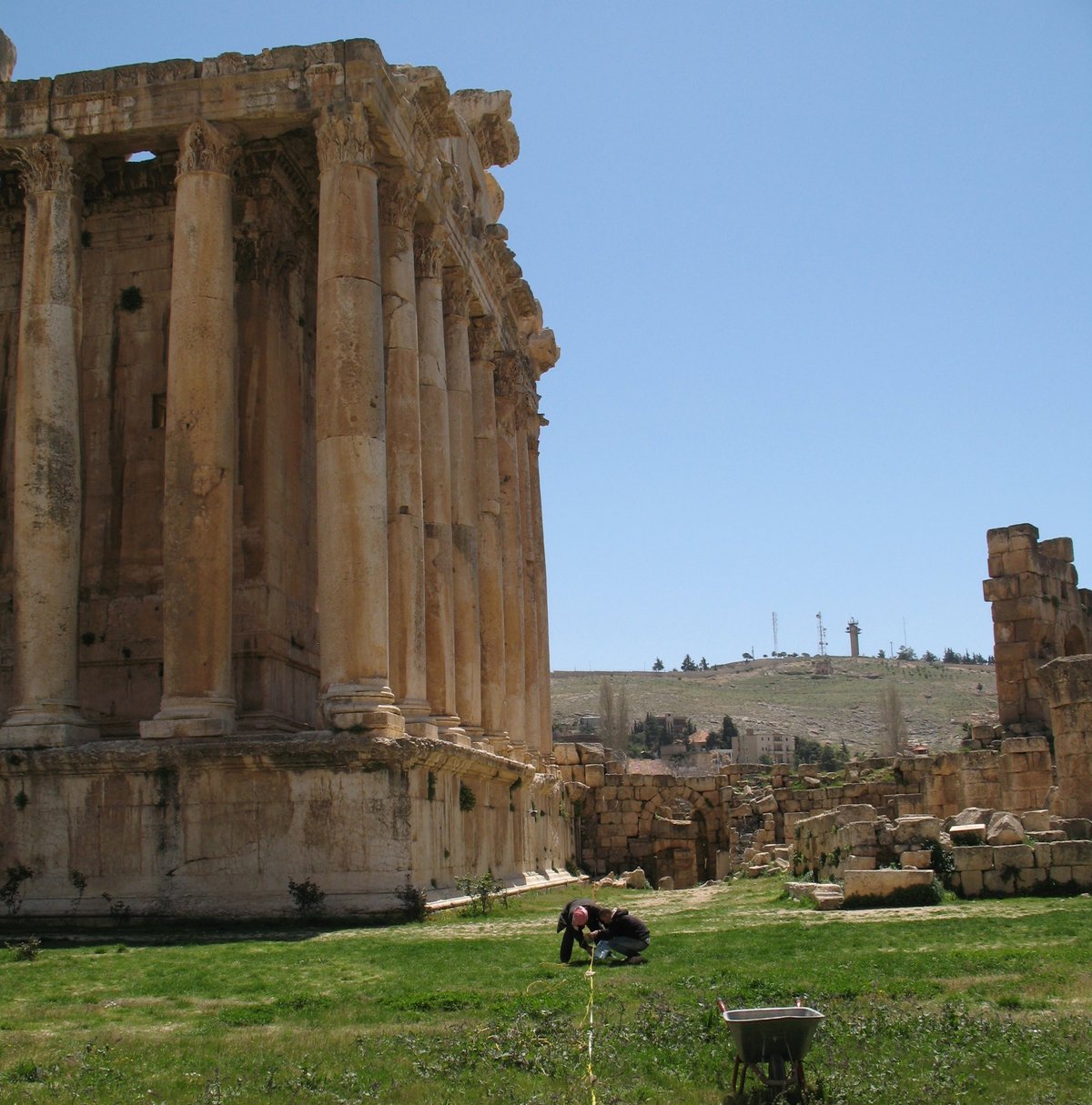 Geophysical investigations were conducted at the archaeological site of Baalbek, Lebanon, focusing on the subsurface of the Jupiter Sanctuary and its surrounding areas. The project aimed to improve the understanding of local geological conditions, to identify buried archaeological structures and to assist the clarification of the question: Why has the monument been erected at this location? by using non-invasive geophysical methods, with electrical resistivity tomography (ERT) as the primary tool.