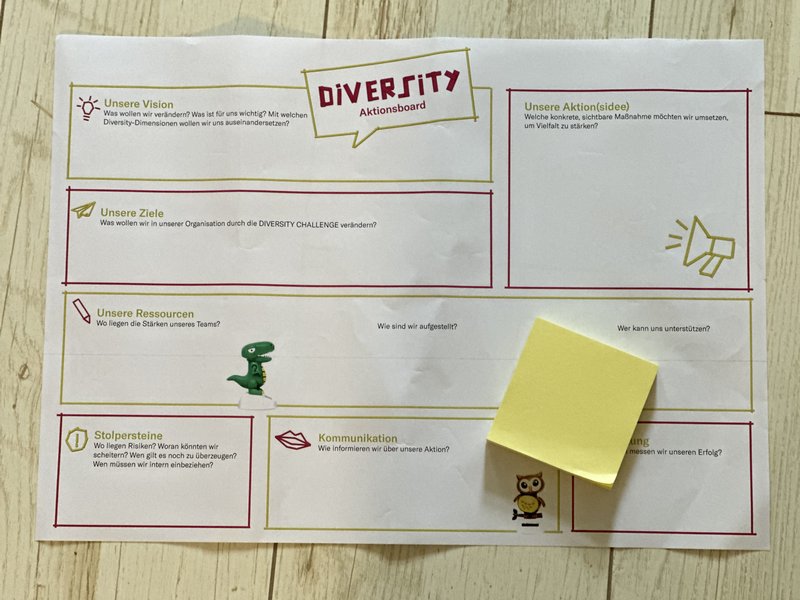 Would you like to promote diversity in your organisation? Are you bubbling over with ideas for a suitable campaign and would like to get started straight away? At the same time, are you afraid of losing the structure? Or you still have no idea what a suitable campaign for your organisation could look like? Whether you want to bring some order to your chaotic thoughts or are still in the process of collecting your first action ideas: That's what the Diversity Action Board is for. It offers plenty of space to brainstorm, take a close look at your own action idea and move forward with implementation - it is therefore an ideal tool that accompanies you from brainstorming to implementation and helps you to maintain a good overview at all times.