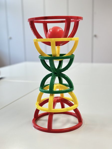The game consists of eight magnetically connectable pieces and a ball. When put together, the pieces form differently coloured magnetic balls of different sizes.