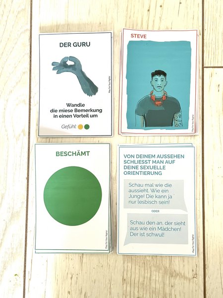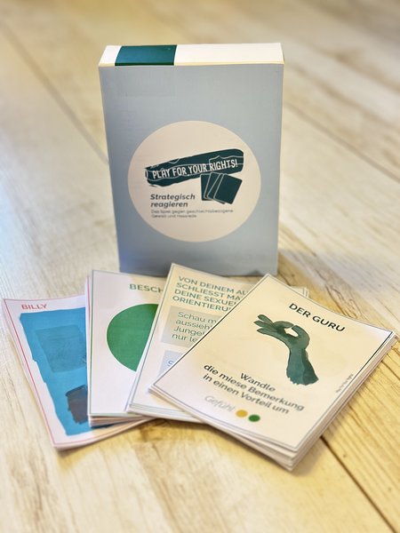 "Play For Your Rights" is an innovative card game that offers young people a safe space to playfully engage with the topics of hate speech and gender-based violence. The playful elements are linked to the world of emotions and relationships and enable young people to discuss these important topics. The game helps to recognise different forms of sexist hate speech and the role of gender stereotypes and prejudice in language. The card game is also accompanied by a digital urban game. The accompanying app mirrors some of the situations depicted on the cards and thus opens up new ways of working and reflecting with young people. Overall, this set offers a holistic and entertaining method for sensitising young people to the topics of hate speech and gender-based violence.