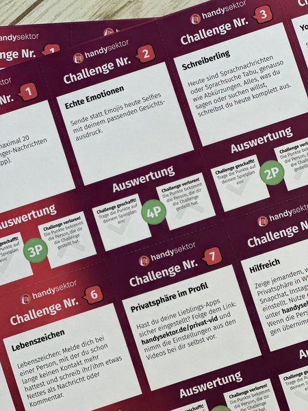 The game is played against each other, i.e. one player chooses the most difficult challenge for you! At the end of the challenge, it's time for the check: Who completed their task and who had to give up? Points are awarded for each challenge. At the end of the period, all points are added up. Whoever has scored the most points wins the Handysektor Real Life Challenge!
