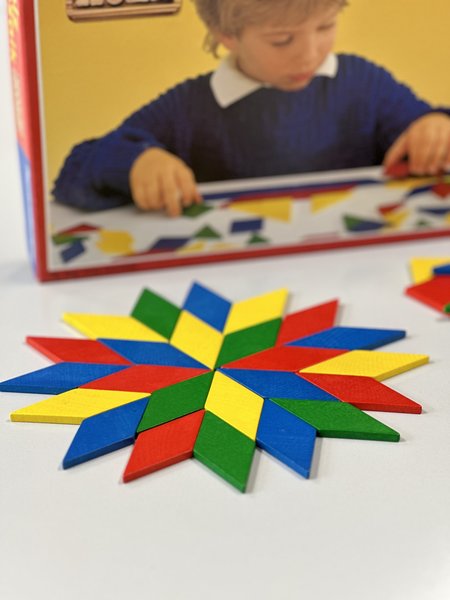 Inventing and laying imaginative shapes - wooden mosaic pegging games are educationally valuable learning games that fund spatial imagination and train motor skills. They consist of various geometric mosaic pieces that are put together. Important skills such as recognising colours and shapes are addressed, as is creativity.