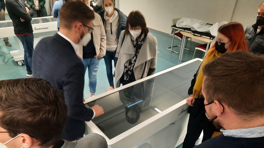 An essential element of the anatomy lab are the two virtual dissection tables from Anatomage. With the help of the virtual dissection tables, students in the anatomy lab can learn about the anatomy and physiology of the human body in a digitally supported and interactive way. Virtual dissection tables display anatomical structures in 3D based on real, fully segmented anatomies. The structures displayed can be digitally dissected or visualised layer by layer. Full-body views and partial views can be displayed, as well as animated videos, such as those showing blood flow. Virtual dissection tables are by no means common in teaching at universities or colleges offering courses in therapy, nursing or midwifery. The BTU thus completes the modern and excellent equipment of its teaching and research facilities.