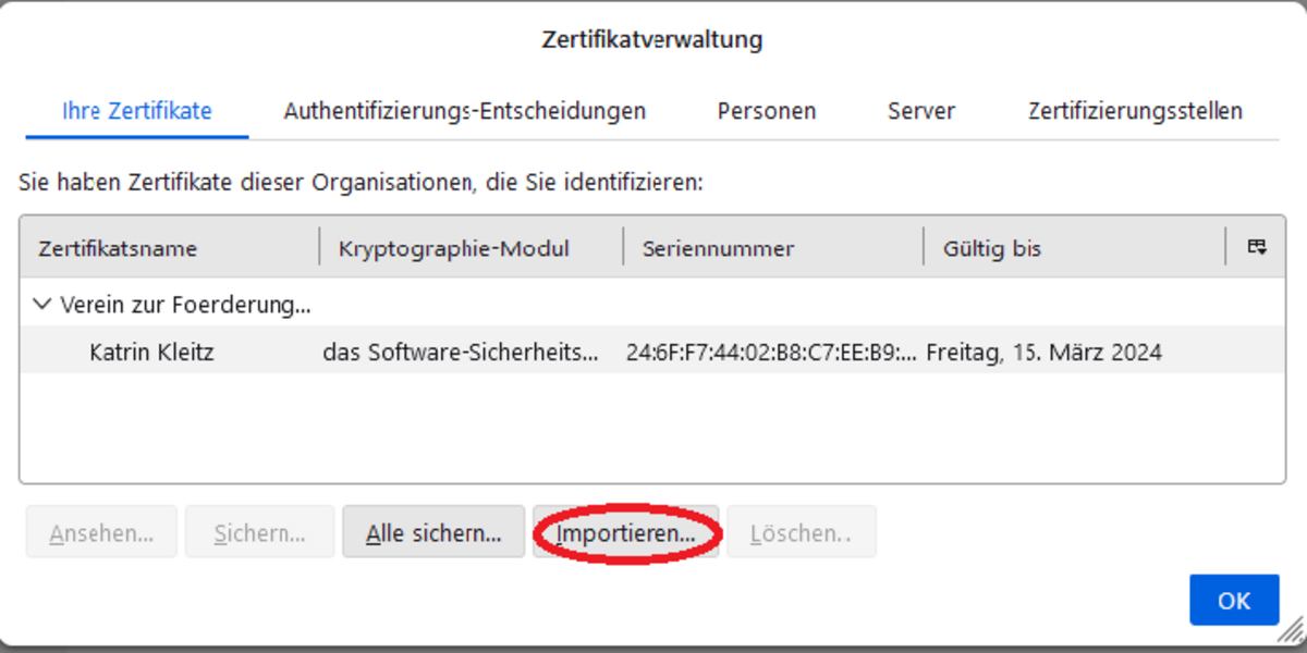 Importing a personal SSL certificate (*.p12 file) into Mozilla Thunderbird's internal certificate store
