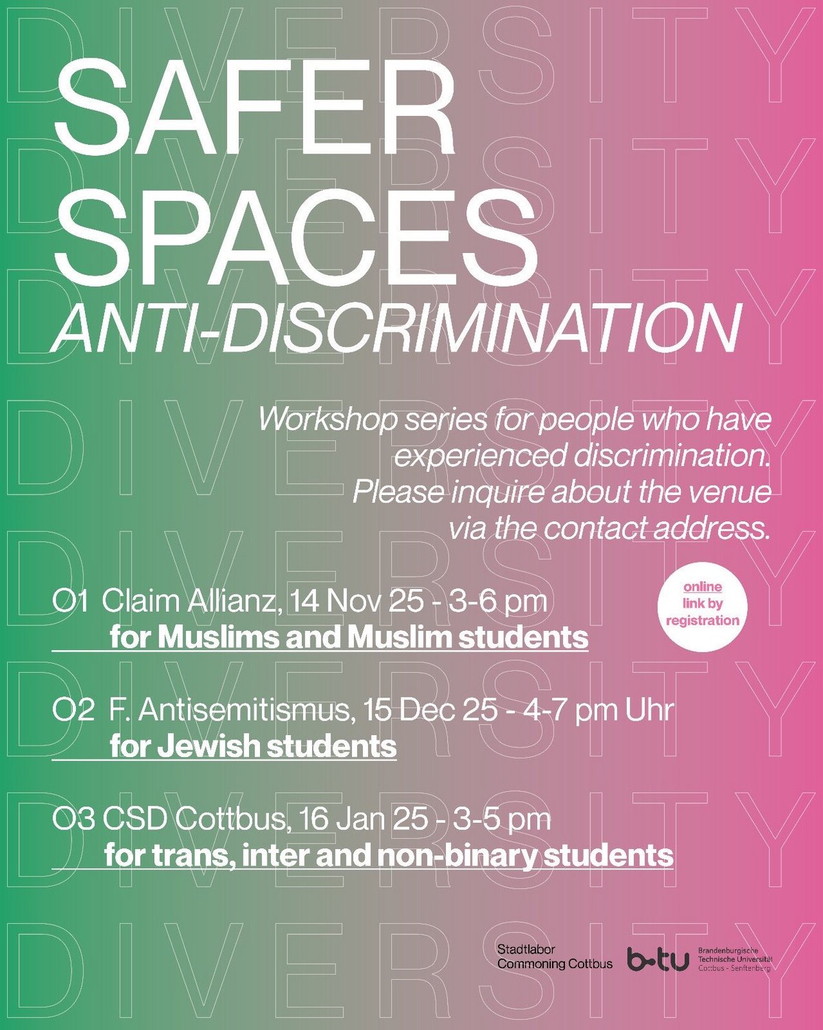 **Note**: The events are aimed exclusively at people who are themselves affected by the respective form of discrimination. It is aimed at both German and English-speaking students at BTU.