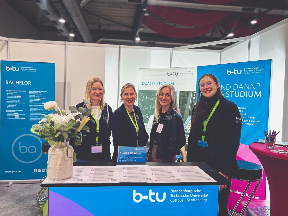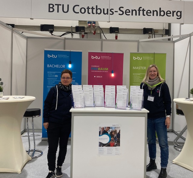 Last weekend, BTU Cottbus-Senftenberg's student guidance and counselling service was represented at the "Einstieg Berlin" trade fair. Our staff were on hand to provide information about the wide range of degree programmes on offer at BTU, provide insights into course content and answer questions about application, admission and starting your studies.