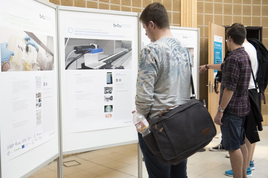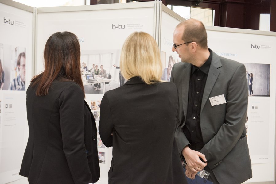 On October 18, 2017, the btutransfer day took place for the second time. This year, business representatives were invited to the Konrad Zuse Media Center at the Senftenberg campus to learn about current research projects and cooperation opportunities with the BTU. Anja Bölicke, Managing Director of Silicon Radar GmbH, Frankfurt (Oder), opened the event with a keynote address on the opportunities and challenges in knowledge transfer between small and medium-sized enterprises and the university. The legal framework conditions are just as important here as the internalization that knowledge and technology transfer is not a one-way street, i.e. knowledge and expertise should always be exchanged in both directions, she summarized. This year, the following presentations were based on the four research fields of the BTU: "Smart Regions and Heritage," "Energy Efficiency and Sustainability," "Biotechnology, Environment and Health," and "Cognitive and Reliable Cyber-Physical Systems. The researchers used the short speaking time of three minutes to present interesting projects in as targeted a manner as possible and thus convey a broad picture of the activities at the university in as compact a form as possible. The topics included virtual engines, lightweight construction projects, concepts for minimizing trace pollutants in rivers and lakes, and the detection of nanoparticles. In the second part of the event, the Technology and Innovation Department, the Start-Up Service, the Alumni Department, the Career Center and the Center for Continuing Education provided information about the various types of knowledge and technology transfer at the BTU. The afternoon was rounded off with selected laboratory tours of the Senftenberg Efficient Factory Center, Biotechnology, Health Sciences, and the Senftenberg Innovation Center.
