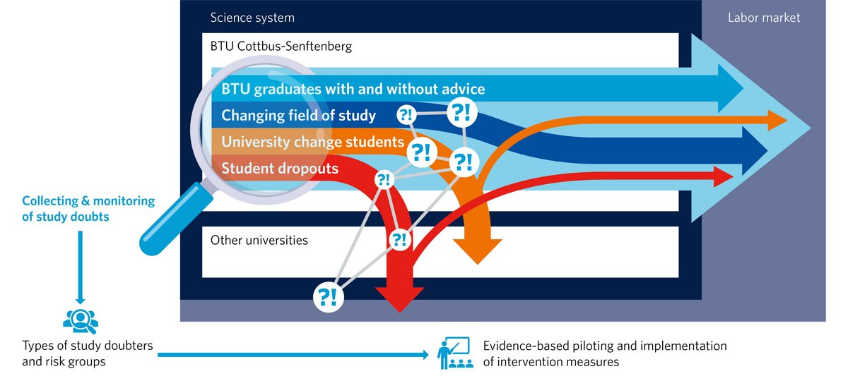 - to derive customised counselling services for the counselling network (BTU, HWK, IHK, DB, AA), in order to help more students achieve a successful final degree.