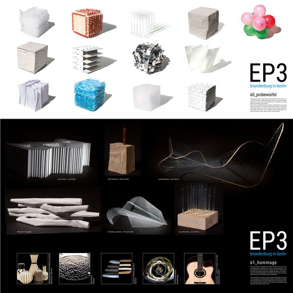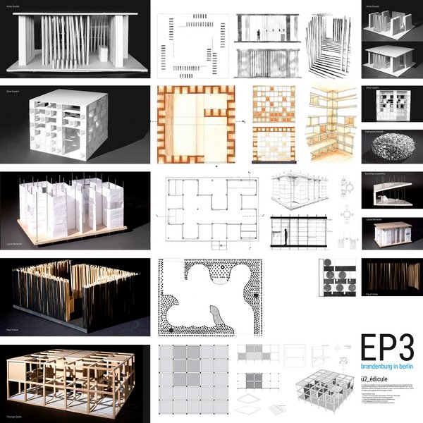 Das dritte Entwurfs-Semester EP3 fokusiert auf das spielerisch-experimentelle Kennenlernen unterschiedlicher Baumaterialien, deren gestalterisch-ästhetische Anwendung und den konstruktiv korrekten Einsatz zur Umsetzung einer Gestaltungsidee.