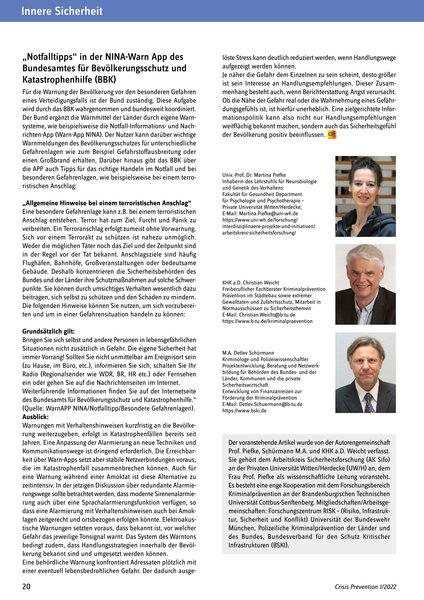 Verhalten bei Amok und Terrorin Crisis Prevention 1/2022 - Seiten 16 - 20