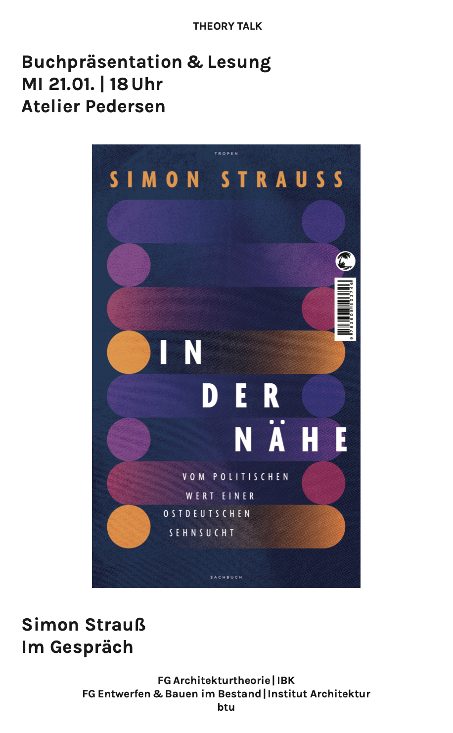 Das Fachgebiet Architekturtheorie möchte in Kooperation mit dem Fachgebiet EBB Entwerfen und Bauen im Bestand zum zweiten Theory Talk am 21. Januar um 18 Uhr einladen.