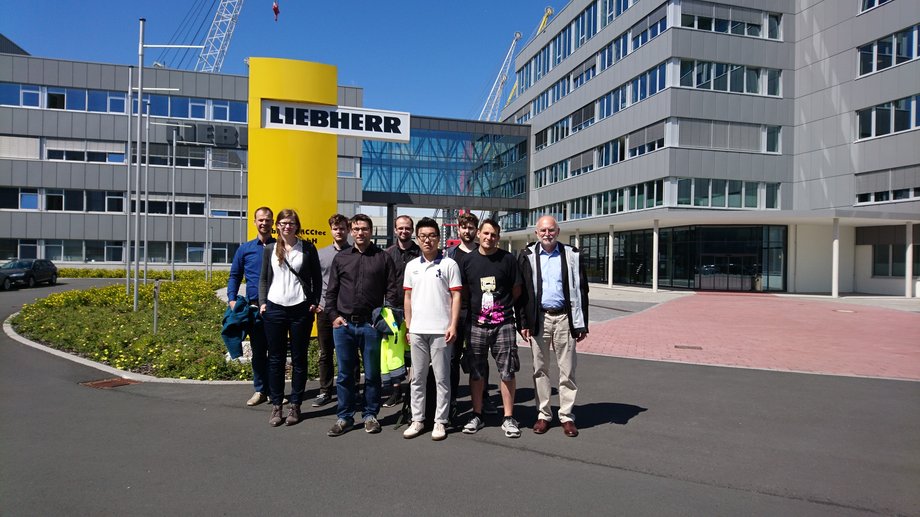 Für sechs Studierende aus dem Bachelor- und Masterstudiengang Bauingenieurwesen mit Vertiefung im konstruktiven Ingenieurbau, sowie im Schwerpunkt Simulationsmethoden und zwei Lehrenden des Fachgebietes Baumechanik ging es am 14. Juni 2017 auf eine Tagesreise an die Ostsee. Ziel war die Firma Liebherr-MCCtec Rostock GmbH, die vor Ort Schiffs-, Hafenmobil- und Offshorekrane mit über 1500 Mitarbeitern entwickelt und fertigt.