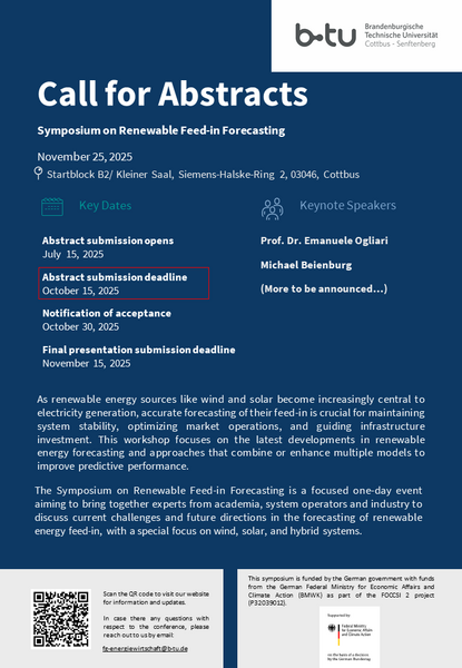 • Prof. Felix Müsgens (BTU / Energy Innovation Center) – Zum Wert von Prognosen in Energiesystemen