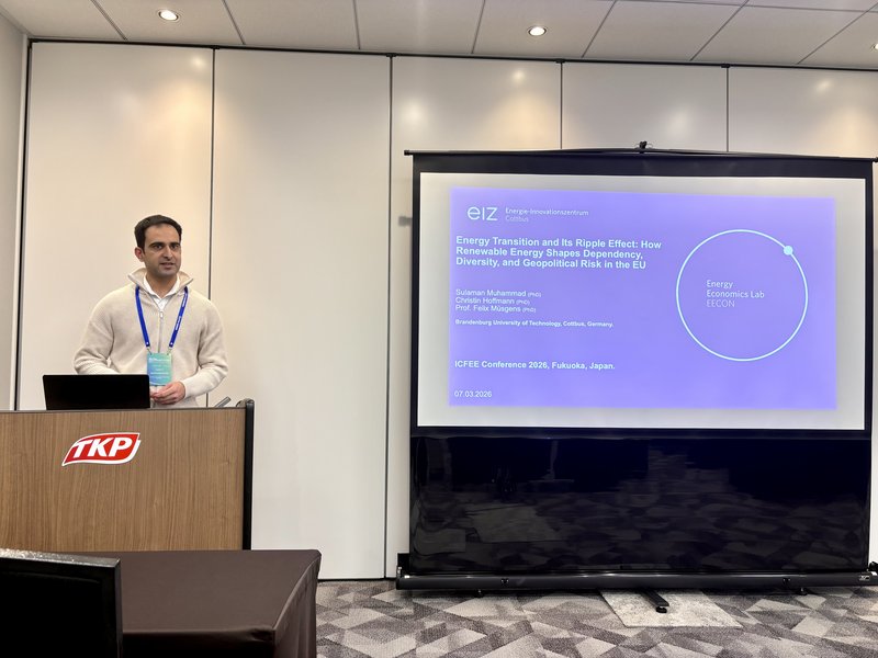 Während der Konferenz stellte er das gemeinsam mit Dr. Christin Hoffmann und Prof. Felix Müsgens verfasste Papier mit dem Titel „Energy Transition and Its Ripple Effect: How Renewable Energy Shapes Dependency, Diversity and Geopolitical Risks in the EU” (Energiewende und ihre Auswirkungen: Wie erneuerbare Energien Abhängigkeit, Diversität und geopolitische Risiken in der EU beeinflussen) vor.