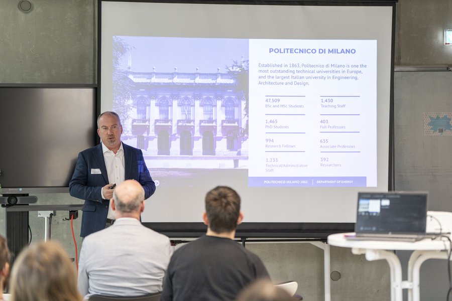 Gleichzeitig hat Felix Müsgens, Leiter unseres Fachgebiets, den Nutzen von Energiespeichern für das Energiesystem erläutert: Sie können überschüssigen Strom aufnehmen, etwa in Stunden mit sehr niedrigen oder sogar negativen Strompreisen, und ihn später wieder bereitstellen. Dadurch tragen sie zur Stabilisierung des Stromnetzes bei und ermöglichen eine effizientere Nutzung erneuerbarer Energien.