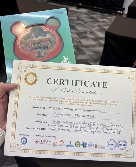 Wir freuen uns, mitteilen zu können, dass unser Kollege Dr. Sulaman Muhammad an der 16. Internationalen Konferenz über Zukunftsumwelt und Energie (ICFEE) teilgenommen hat, die vom 6. bis 8. März 2026 in Fukuoka, Japan, stattfand.
