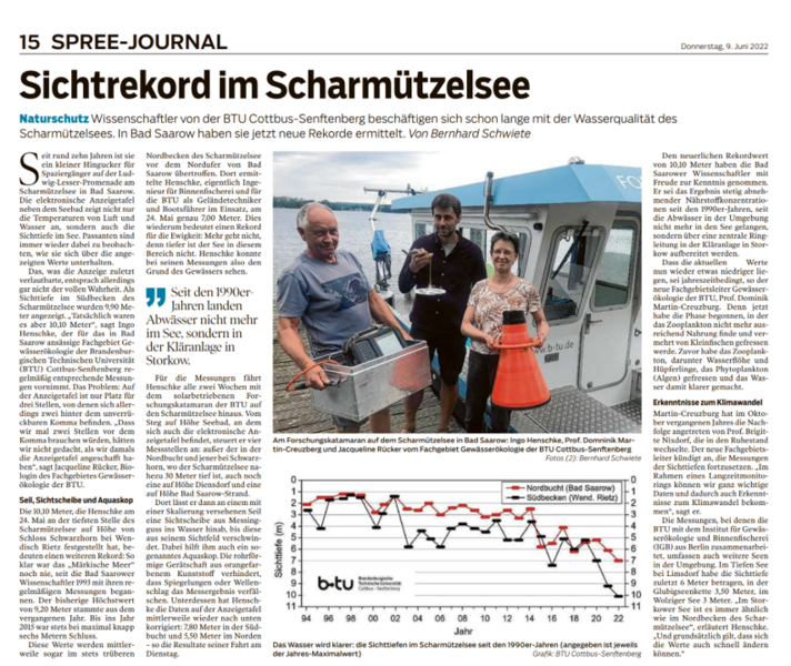 Begleitet wurde die Aktion vom rbb, den wir auf unserem Forschungskatamaran willkommen heißen durften. Auch die MOZ berichtet von der "futuristischen Boje":